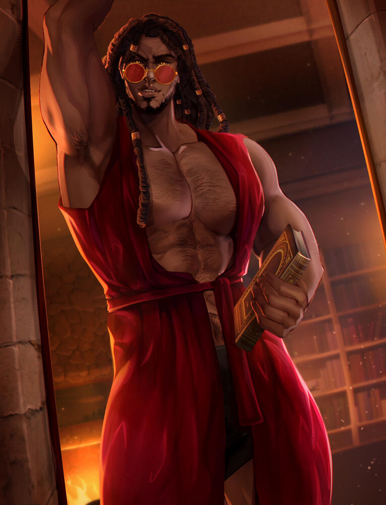 Maurice, scion of the esteemed Cain bloodline, carries the legacy of Warmages with a touch of half-elf ancestry. Although born to human parents, he embodies qualities of his ancient forebears. Towering at an impressive height over six feet, Maurice’s presence is as commanding as his weight, just shy of 225 pounds. Under the cover of night, his skin takes on a dark brown hue, while daylight reveals a smooth umber shade that marks him unmistakably as the progeny of Dalaran’s renowned Noble Warmage, Lady Archmage Briana Cain.His remarkable stature is matched by a well-defined physique, the result of rigorous training as an Argent Paladin and the tribal orcish strength conditioning imparted by his stepfather, Krurg Fullguard. Despite his imposing presence, Maurice harbors a trace of modesty; attention drawn away from his face can render him slightly embarrassed, leading him to avert his gaze. This humility is rooted in the wisdom imparted by his stepfather, who remarked on the blessings of maturity even among humans. Hence, Maurice often opts for robes, preferring their comfort and the discretion they afford over the confinement of trousers.