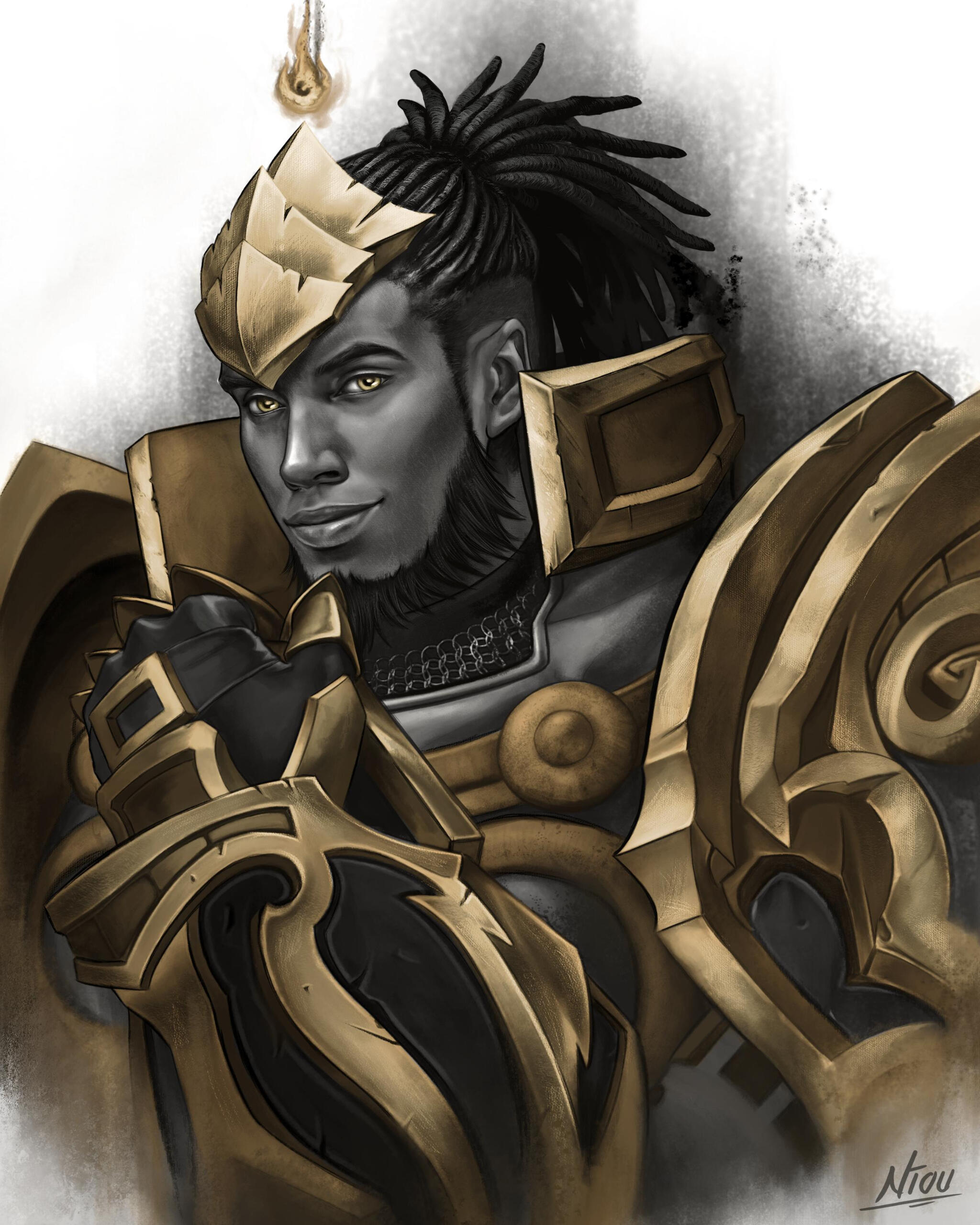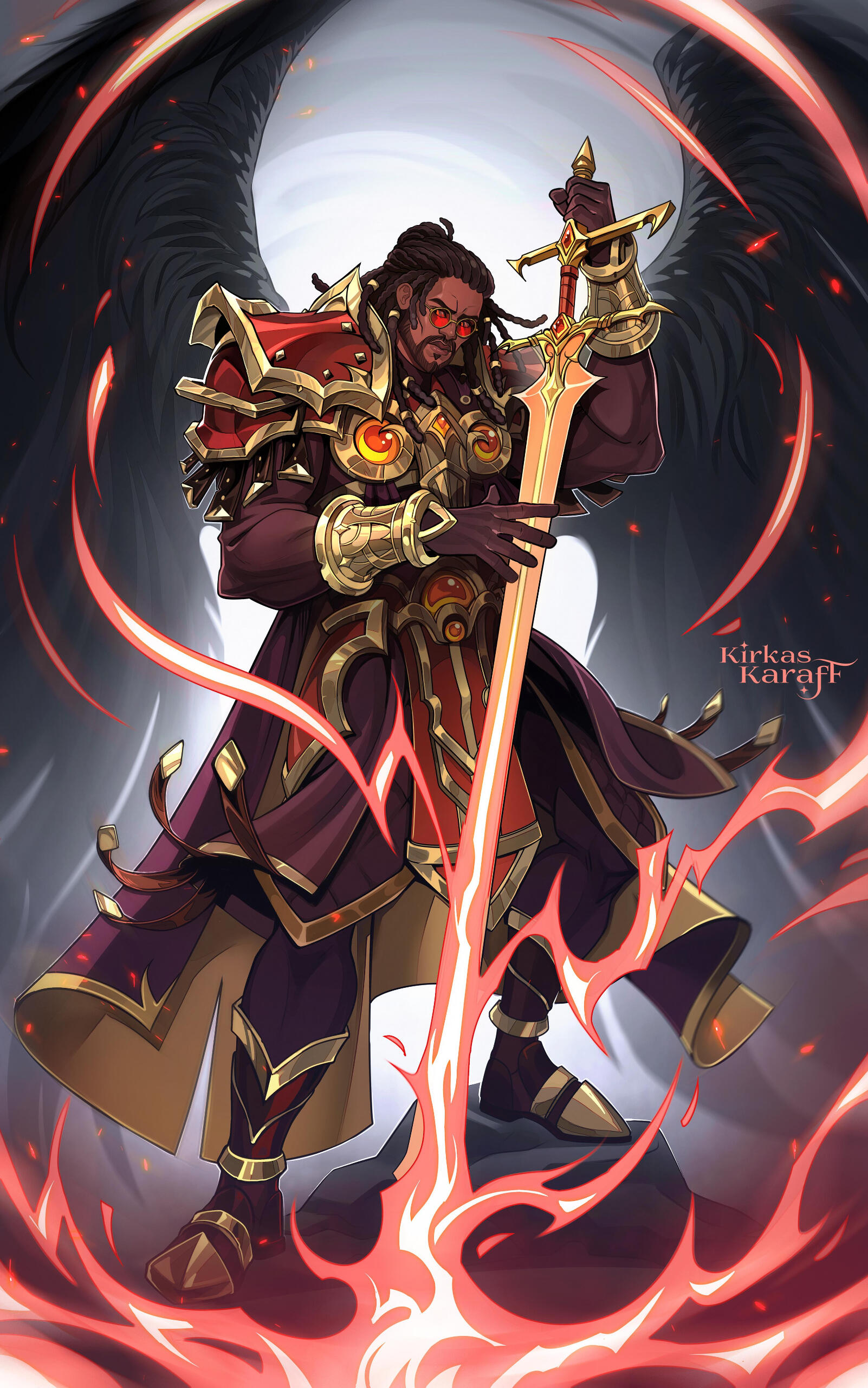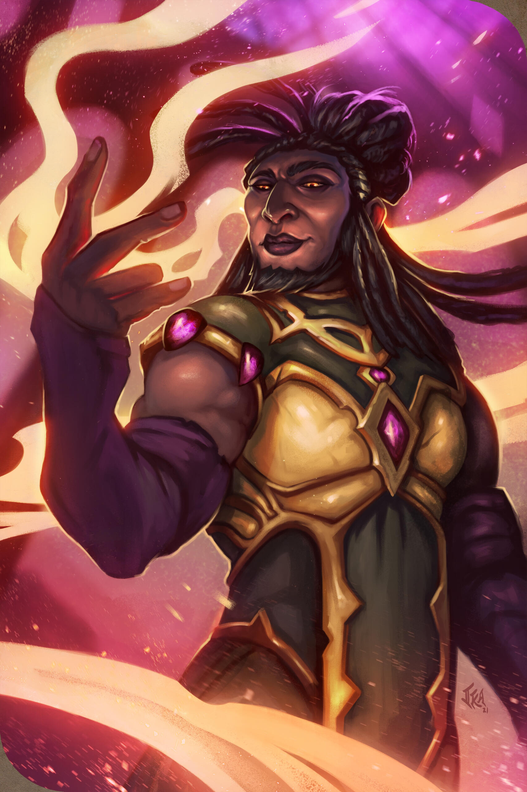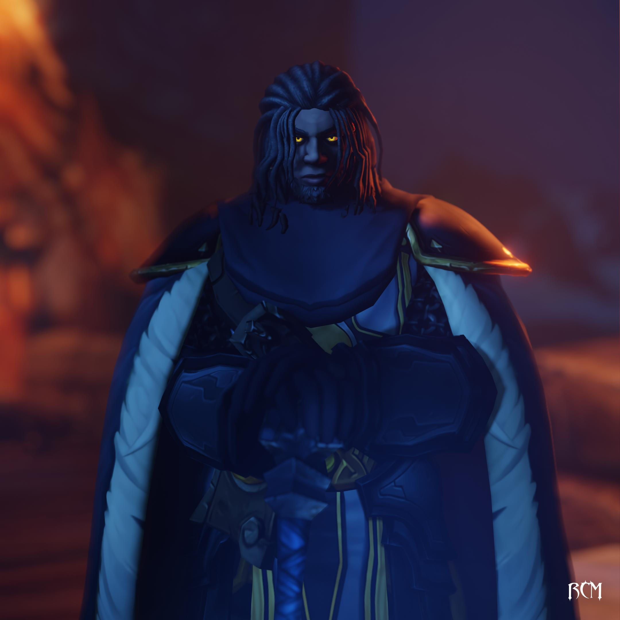 Maurice, scion of the esteemed Cain bloodline, carries the legacy of Warmages with a touch of half-elf ancestry. Although born to human parents, he embodies qualities of his ancient forebears. Towering at an impressive height over six feet, Maurice’s presence is as commanding as his weight, just shy of 225 pounds. Under the cover of night, his skin takes on a dark brown hue, while daylight reveals a smooth umber shade that marks him unmistakably as the progeny of Dalaran’s renowned Noble Warmage, Lady Archmage Briana Cain.His remarkable stature is matched by a well-defined physique, the result of rigorous training as an Argent Paladin and the tribal orcish strength conditioning imparted by his stepfather, Krurg Fullguard. Despite his imposing presence, Maurice harbors a trace of modesty; attention drawn away from his face can render him slightly embarrassed, leading him to avert his gaze. This humility is rooted in the wisdom imparted by his stepfather, who remarked on the blessings of maturity even among humans. Hence, Maurice often opts for robes, preferring their comfort and the discretion they afford over the confinement of trousers.