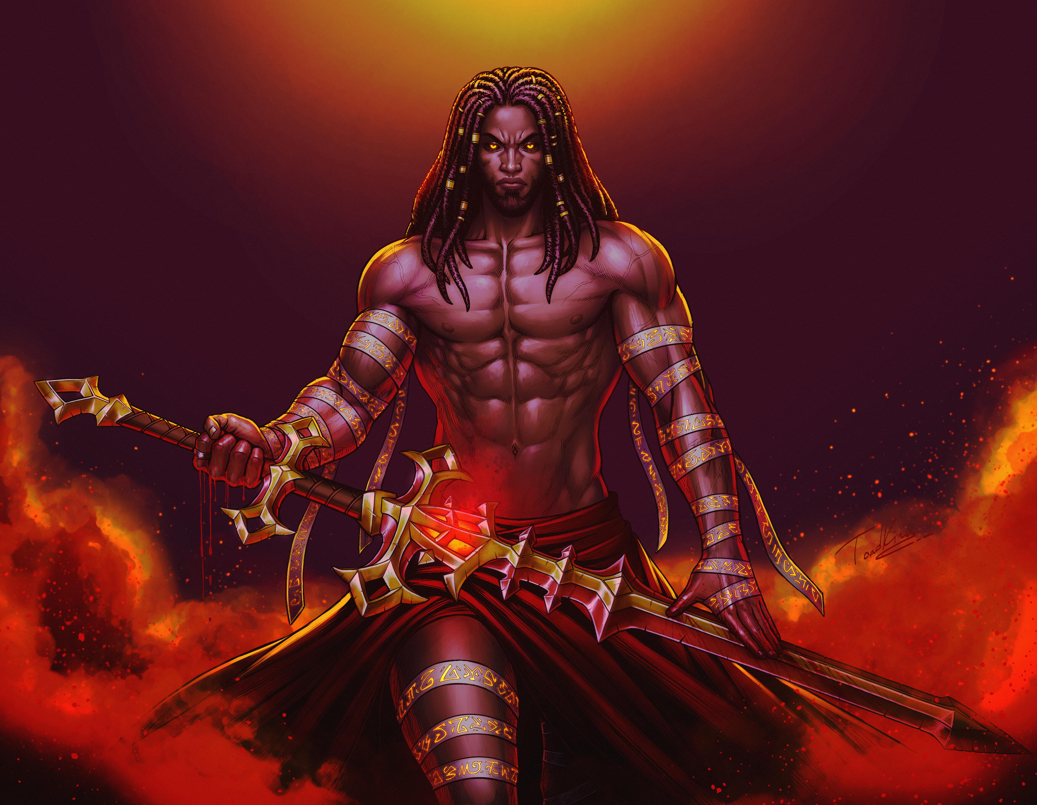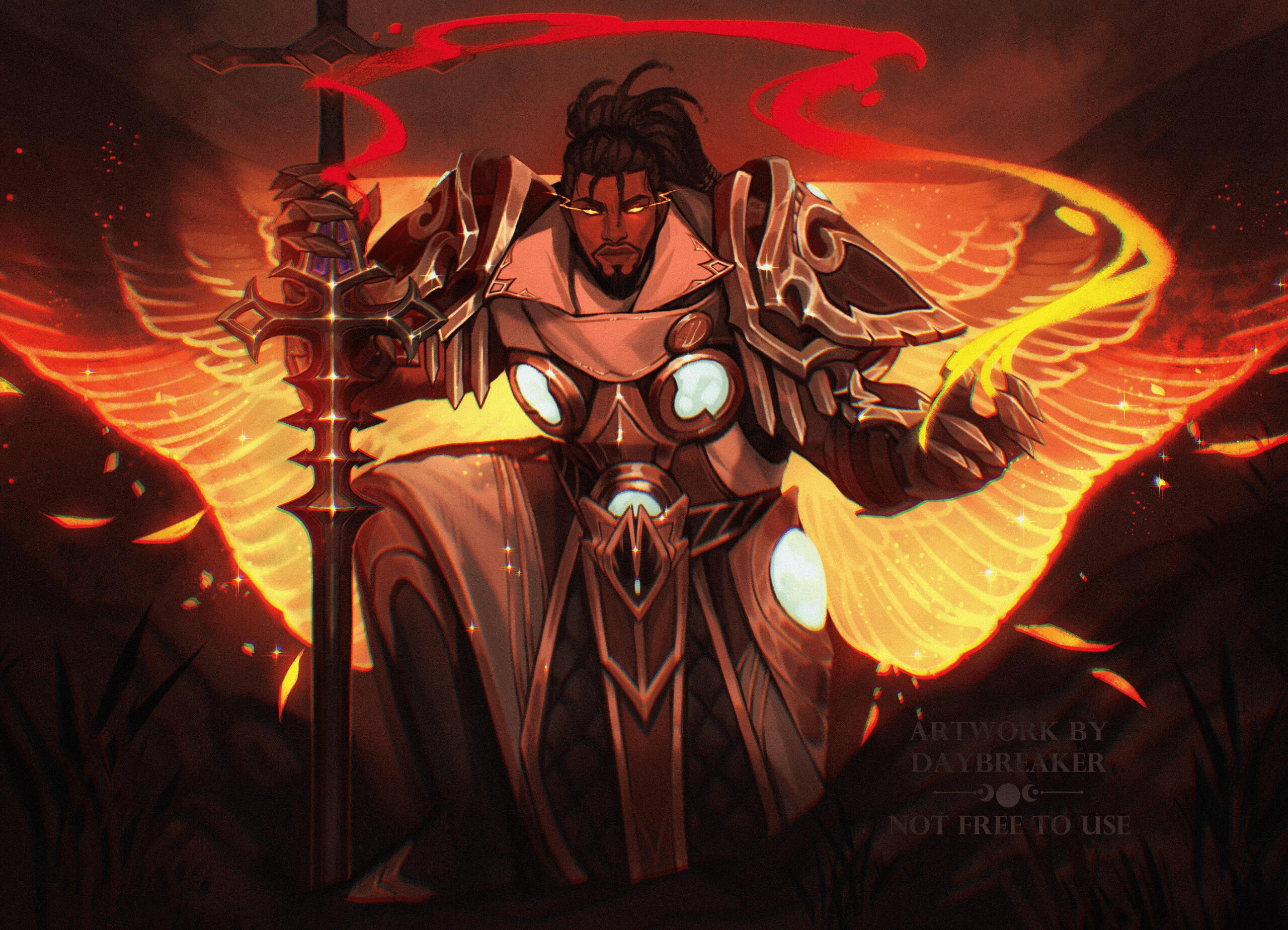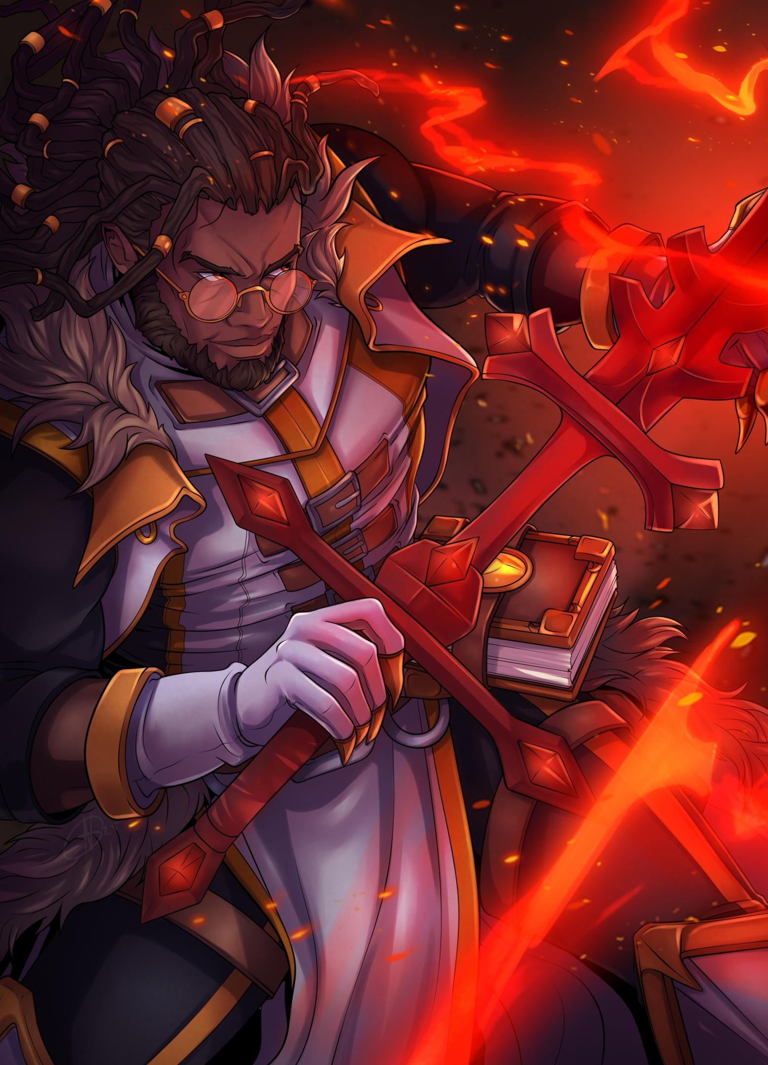 Maurice, scion of the esteemed Cain bloodline, carries the legacy of Warmages with a touch of half-elf ancestry. Although born to human parents, he embodies qualities of his ancient forebears. Towering at an impressive height over six feet, Maurice’s presence is as commanding as his weight, just shy of 225 pounds. Under the cover of night, his skin takes on a dark brown hue, while daylight reveals a smooth umber shade that marks him unmistakably as the progeny of Dalaran’s renowned Noble Warmage, Lady Archmage Briana Cain.His remarkable stature is matched by a well-defined physique, the result of rigorous training as an Argent Paladin and the tribal orcish strength conditioning imparted by his stepfather, Krurg Fullguard. Despite his imposing presence, Maurice harbors a trace of modesty; attention drawn away from his face can render him slightly embarrassed, leading him to avert his gaze. This humility is rooted in the wisdom imparted by his stepfather, who remarked on the blessings of maturity even among humans. Hence, Maurice often opts for robes, preferring their comfort and the discretion they afford over the confinement of trousers.