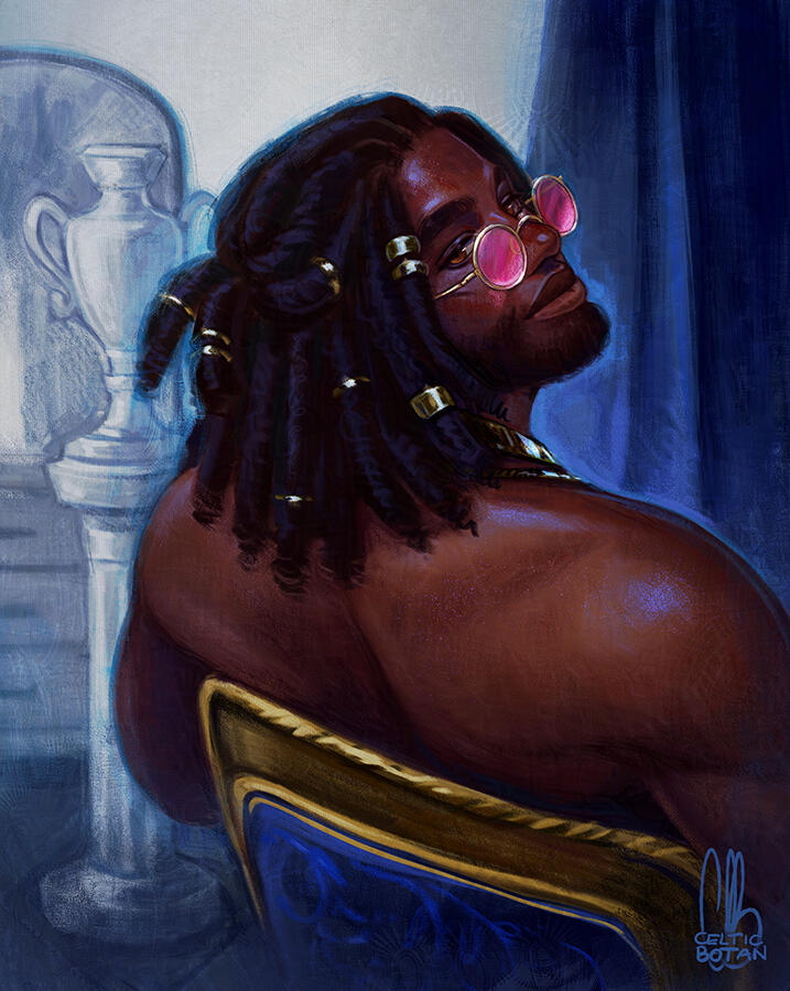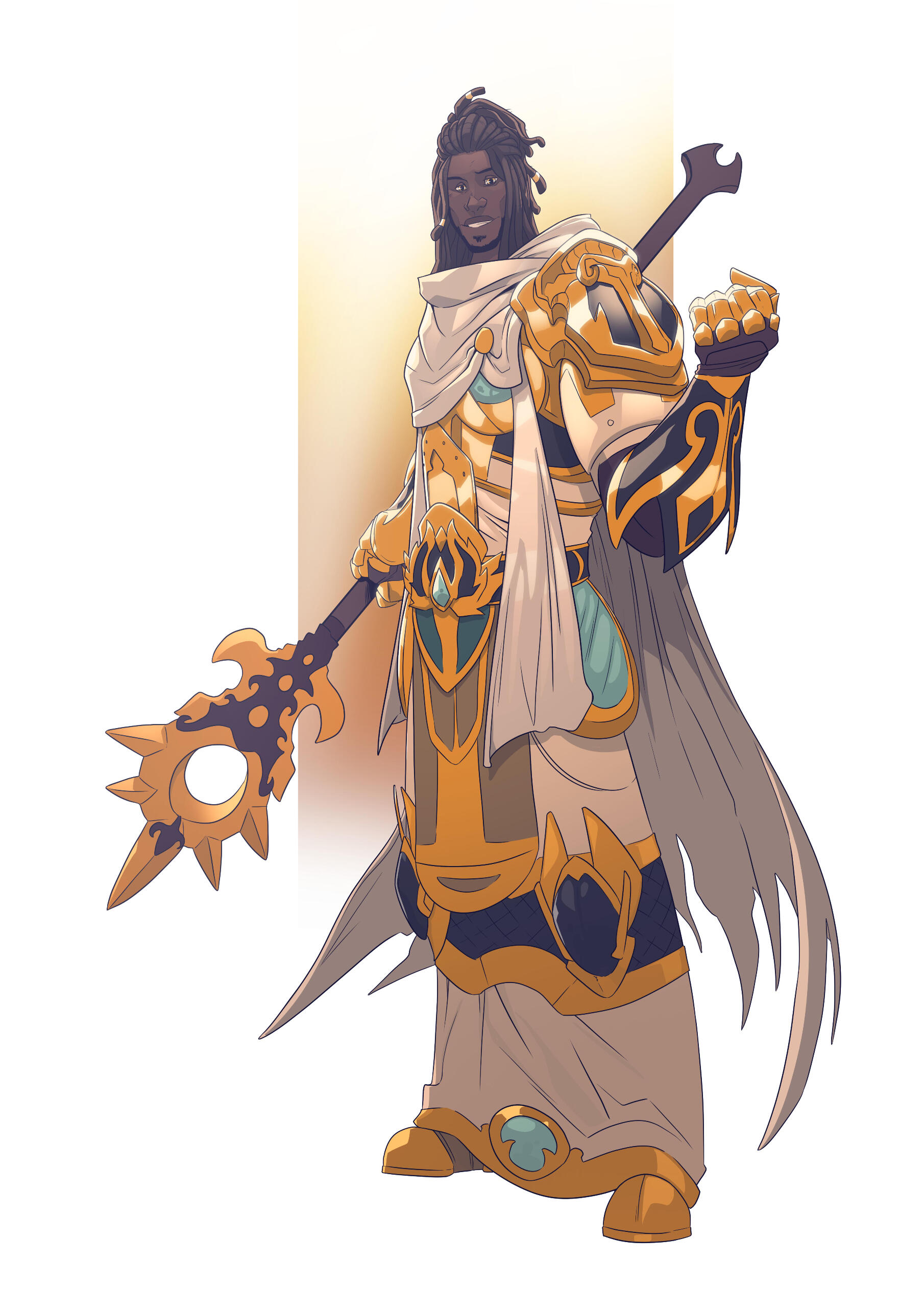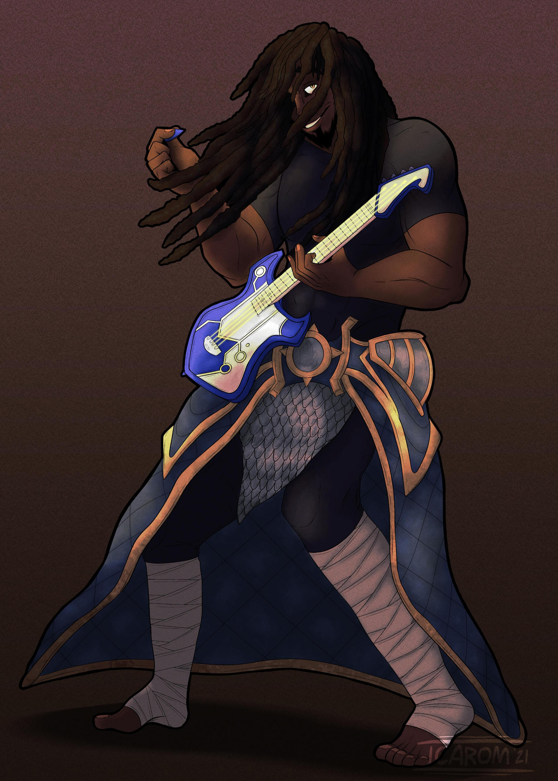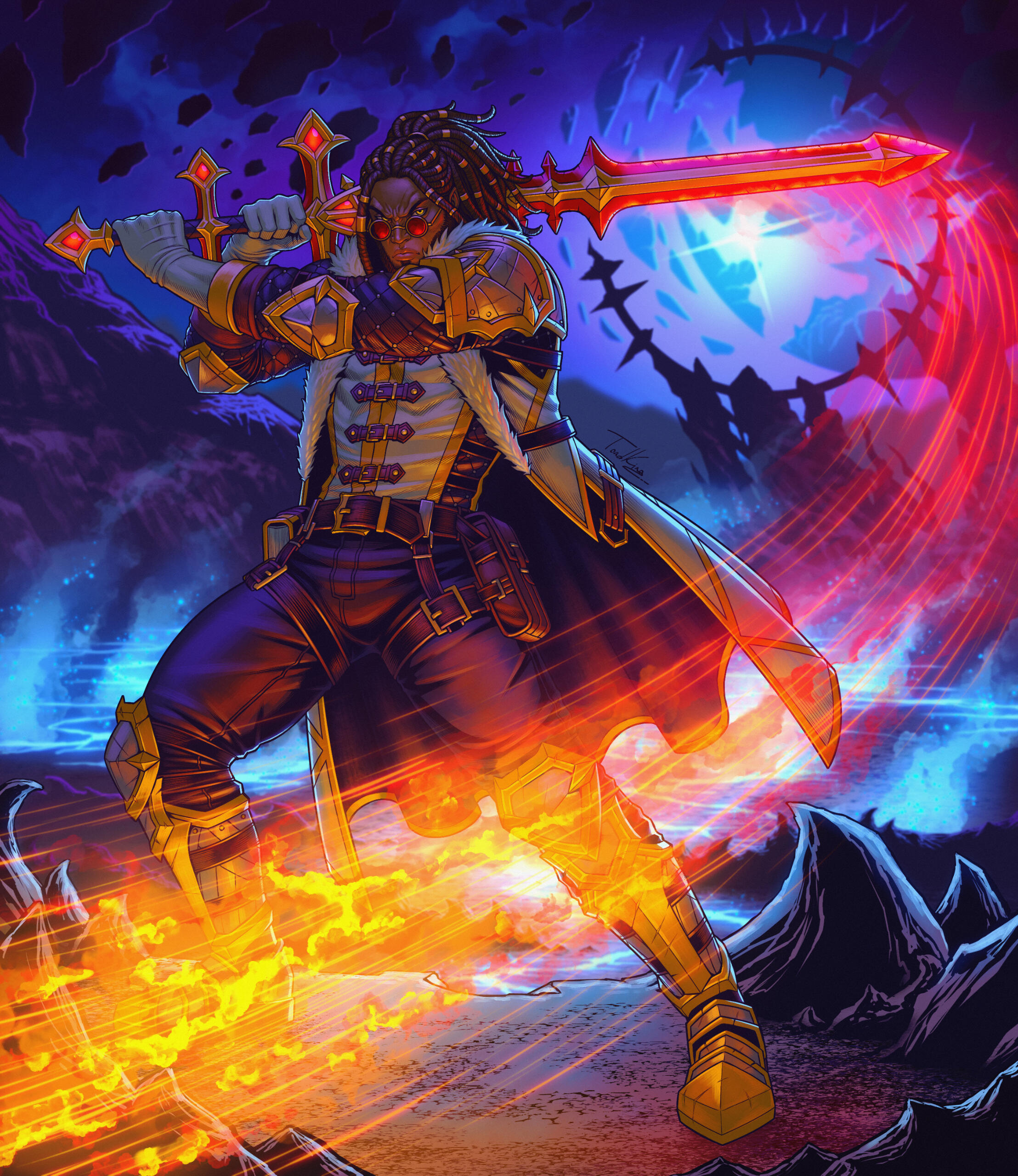 Maurice, scion of the esteemed Cain bloodline, carries the legacy of Warmages with a touch of half-elf ancestry. Although born to human parents, he embodies qualities of his ancient forebears. Towering at an impressive height over six feet, Maurice’s presence is as commanding as his weight, just shy of 225 pounds. Under the cover of night, his skin takes on a dark brown hue, while daylight reveals a smooth umber shade that marks him unmistakably as the progeny of Dalaran’s renowned Noble Warmage, Lady Archmage Briana Cain.His remarkable stature is matched by a well-defined physique, the result of rigorous training as an Argent Paladin and the tribal orcish strength conditioning imparted by his stepfather, Krurg Fullguard. Despite his imposing presence, Maurice harbors a trace of modesty; attention drawn away from his face can render him slightly embarrassed, leading him to avert his gaze. This humility is rooted in the wisdom imparted by his stepfather, who remarked on the blessings of maturity even among humans. Hence, Maurice often opts for robes, preferring their comfort and the discretion they afford over the confinement of trousers.