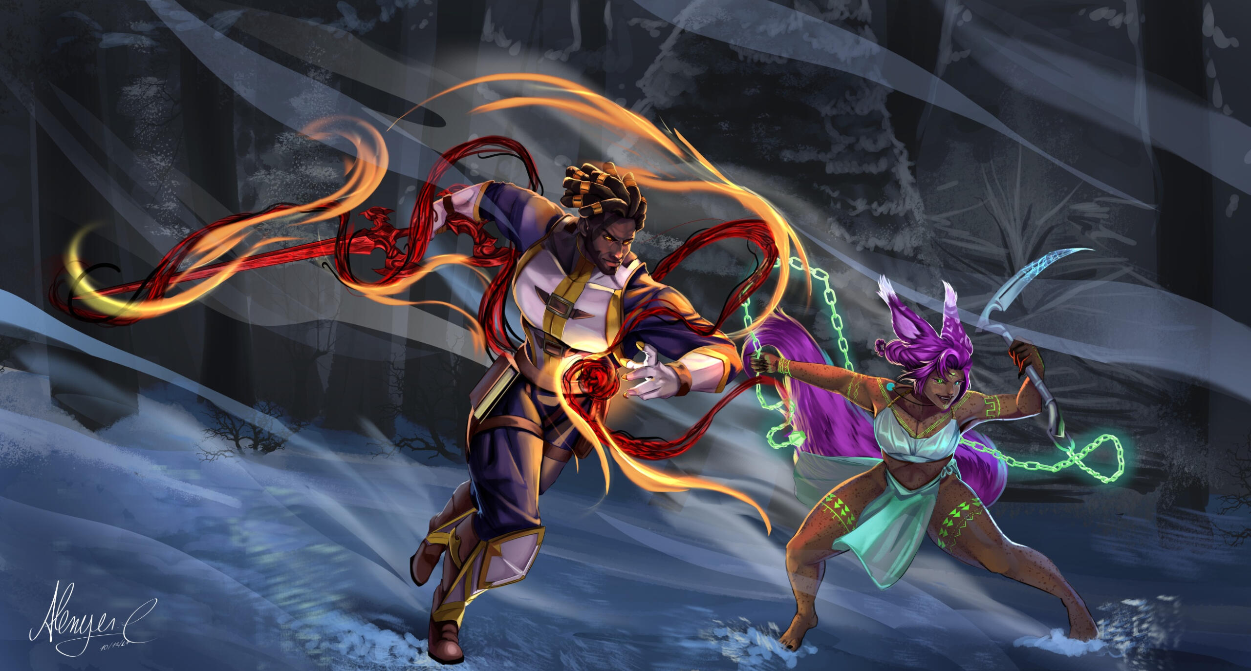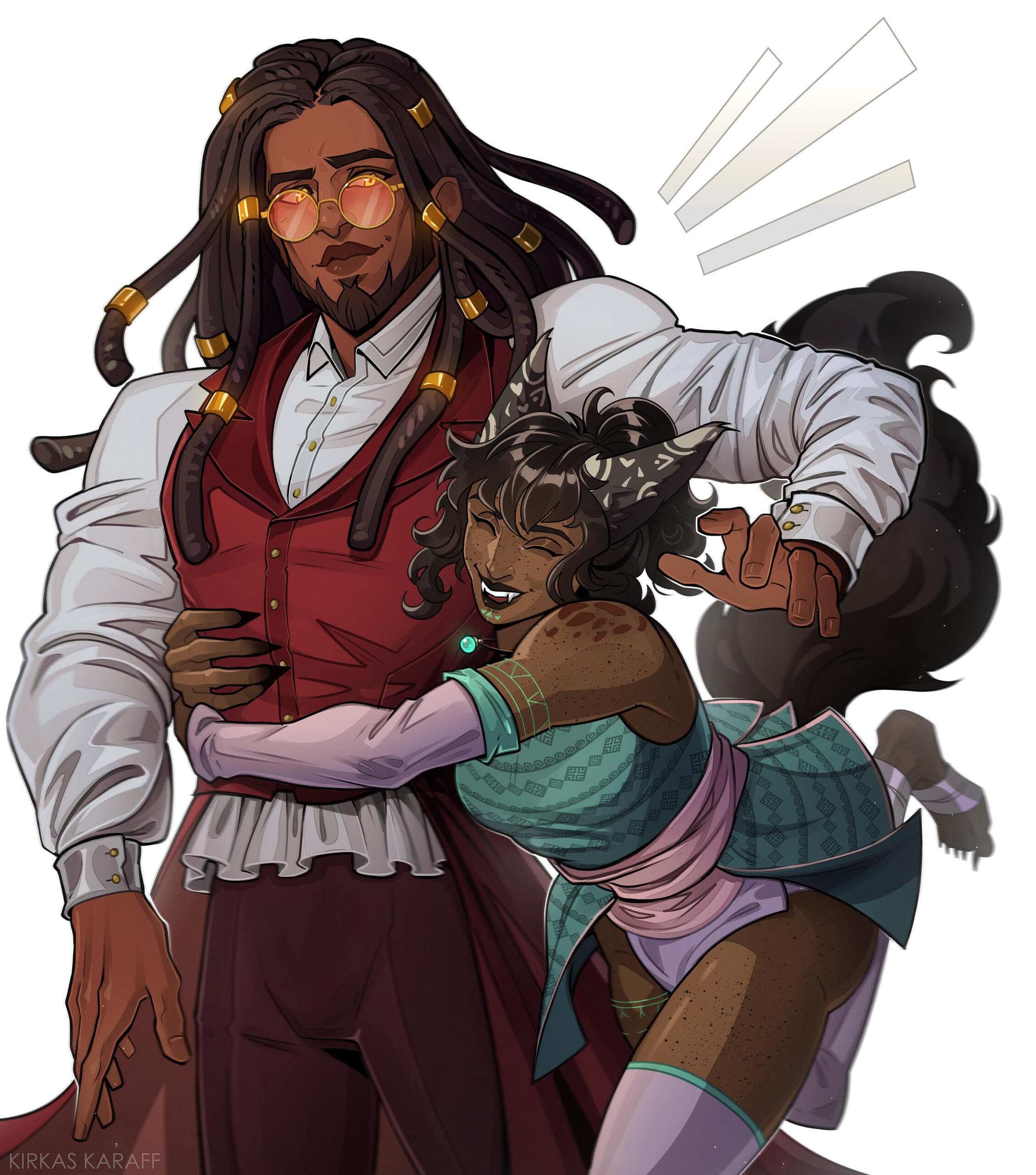 Cleo and Hatred, two close friends with differing timelines of association one longstanding and the other more recent have a notorious history linked to their hazardous line of work. In spite of the risks and challenges inherent in their professions, The Librarian harbors a deep trust in them, though not without some hesitations. This astute human and kal'dorei duo are rather mysterious possessing a depth that transcends initial impressions. Their shrewdness and business acumen imbue them with an aura that serves as a warning to those who might cross their path. Yet, amidst the lurking dangers, they are reassured by the presence of a certain guardian angel, a steadfast ally who is always prepared to intervene should their circumstances take a perilous turn.