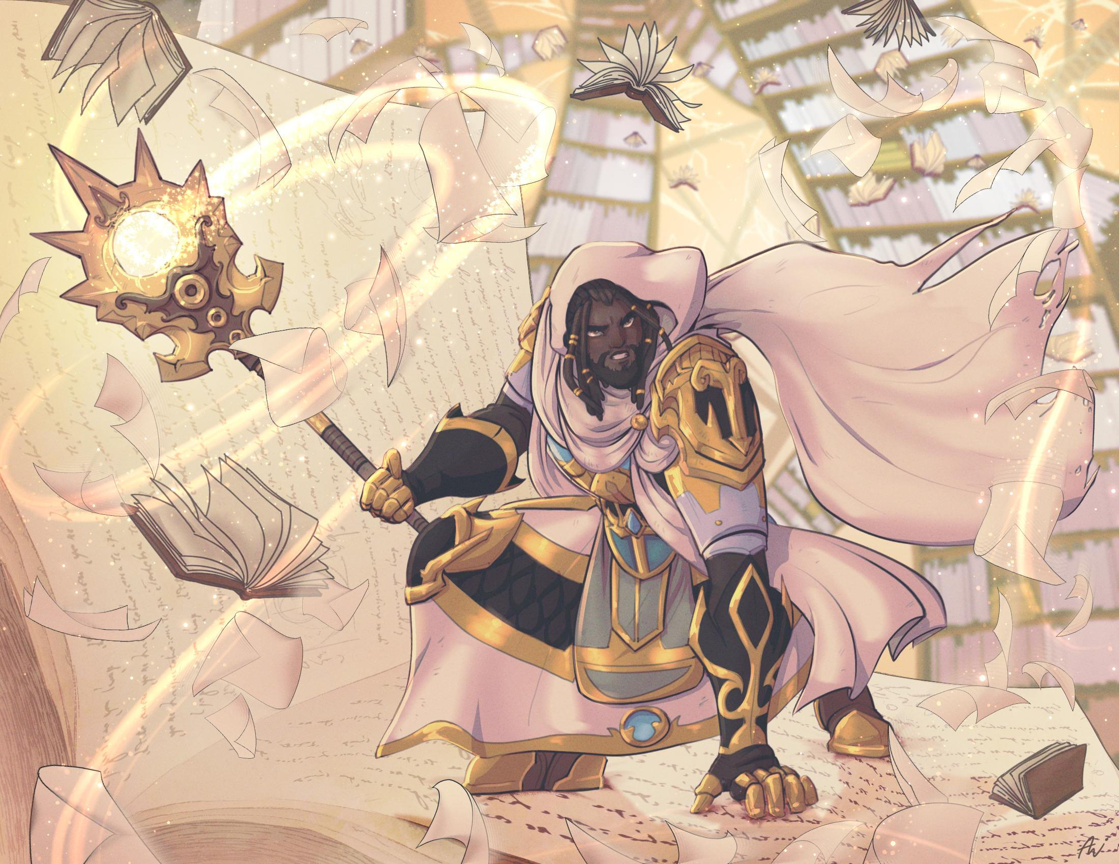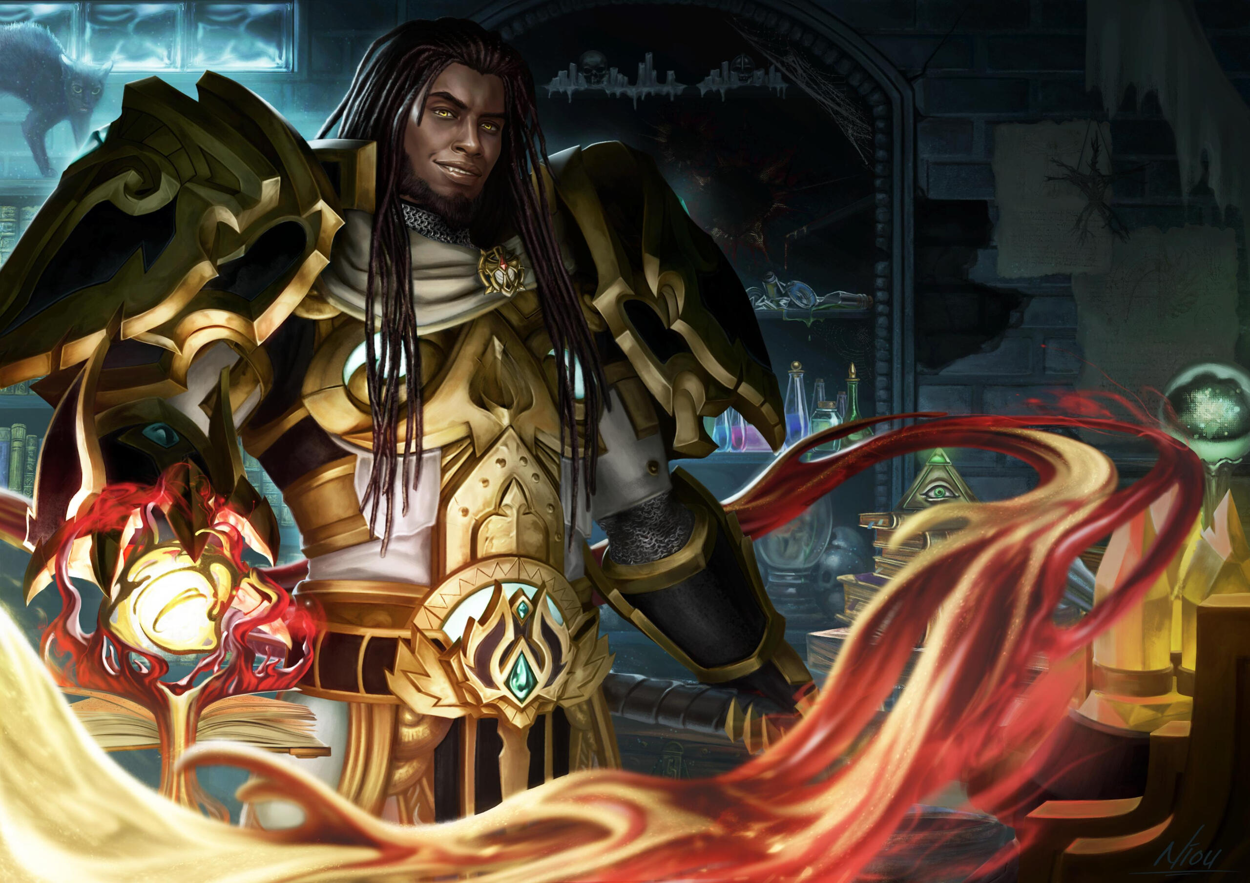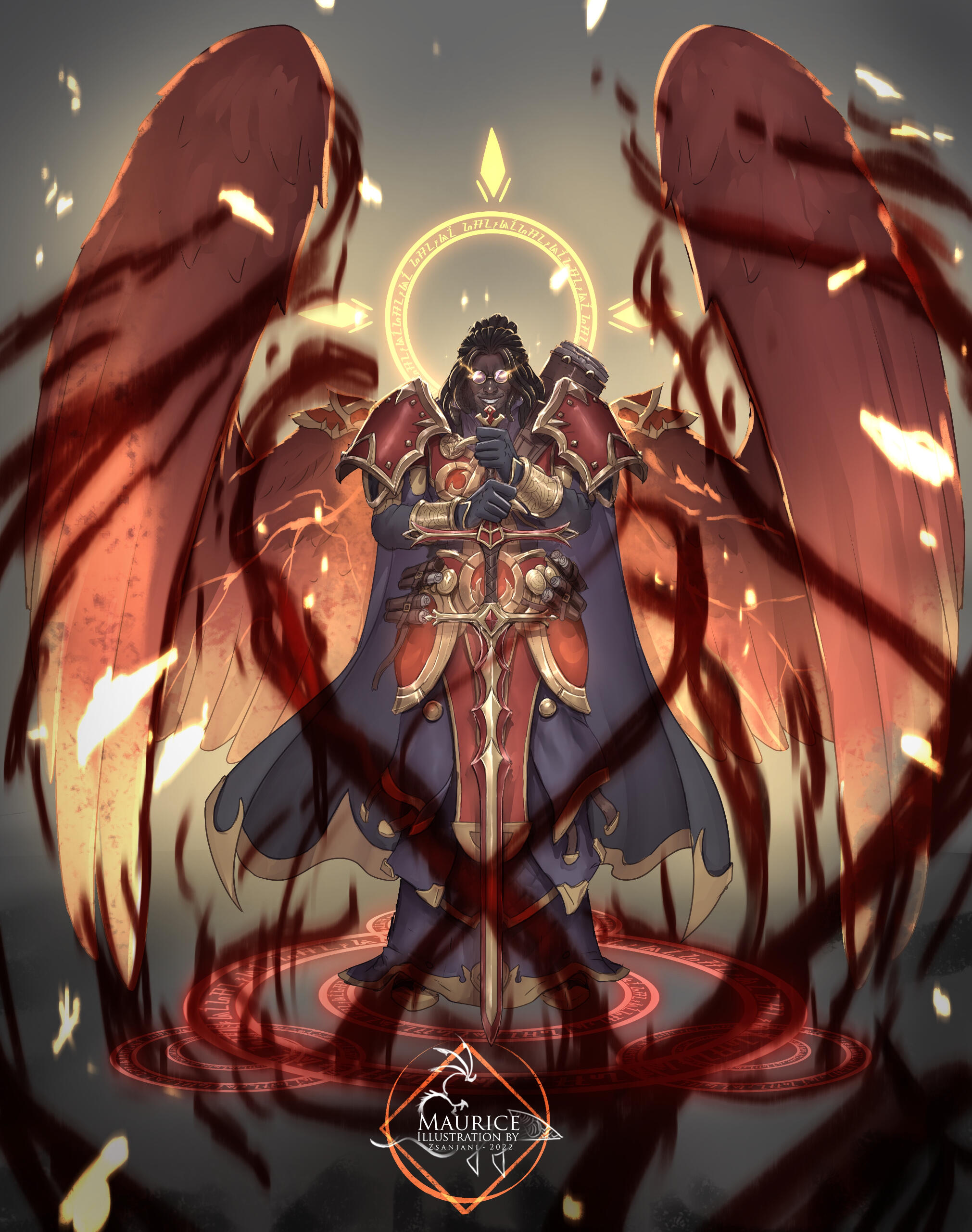With his mother often away, fulfilling her duties as both a Warmage and a Noble, Maurice frequently found himself confined indoors due to his heart condition. Whether within his family's grand estate, the city's vast library, or occasionally the mage academy, he diligently pursued his ambition to follow in his mother's footsteps as a mage. He dedicated any free moment he could find to immerse himself in the ancient tomes and spellbooks left behind by his ancestors.The Cain family's legacy in the Arcane arts was renowned, particularly for their role in producing some of Dalaran's most illustrious battlemages. However, it appeared that Maurice's magical talents fell short, preventing him from enrolling in the Dalaran School of Magical Arts due to his lack of Arcane aptitude. Despite this setback, Maurice surprisingly discovered an exceptional ability to harness the Light, making him the first Cain since the First War to be called to a life of priesthood.One day, while tending to his chores in the small chapel, Maurice encountered three children who would profoundly influence his life. There was Gemmy, a dwarf; Ettran, a high elf; and Matties, a human from the mage school. They were gathered around books that unmistakably belonged to the chapel, not to them. However, when invited to read along, Maurice's curiosity got the better of him, marking the beginning of a friendship that would endure unbroken.