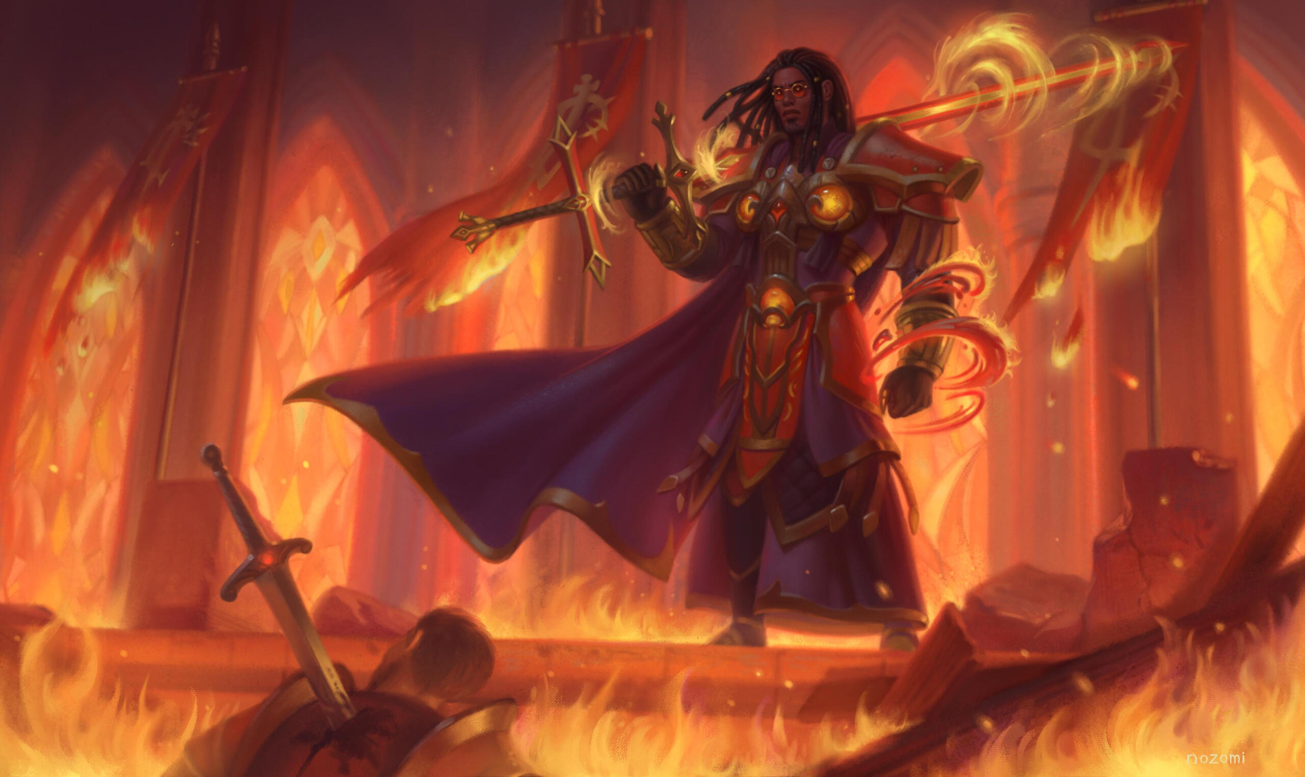 Maurice's life returned to a semblance of normalcy, his family safe and content, the days peaceful. Engaged in sporadic missions for the Kirin Tor with his comrades, tranquility reigned until the cataclysmic events incited by Deathwing and the fall of Theramore disrupted the calm. In the midst of this turmoil, Maurice faced a personal crisis: his friends Mattise and Ettran vanished on an assignment for the Kirin Tor. Fresh from a successful mission against a cabal of rogue dark mages, Maurice, alongside Gemmy, learned of their disappearance. Driven by loyalty, he hastened to Stormwind, the city still reeling from Deathwing's devastation.Determined to find his friends, Maurice scoured the recovering city for leads, even seeking knowledge from its shadier denizens, the warlocks, who supplied him with the whereabouts of the Twilight's Hammer. The trail led him to the forsaken halls of Grim Batol, a stronghold where the cult was known to imprison and sometimes sacrifice their captives.Fueled by urgency, Maurice plunged into the heart of the desecrated city, confronting its malevolent inhabitants. With Faithkeeper in hand, he unleashed torrents of sacred Light, intent on obliterating every trace of the cult and its dark deities. Cultists, ogres, and wyrms alike fell before his righteous fury, none spared from his crusade of cleansing. Yet, with each skirmish, a creeping shadow began to eclipse his luminance, a growing darkness in his heart that threatened to extinguish the very Light he wielded.