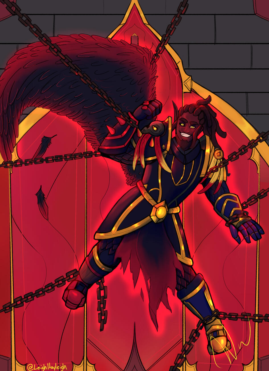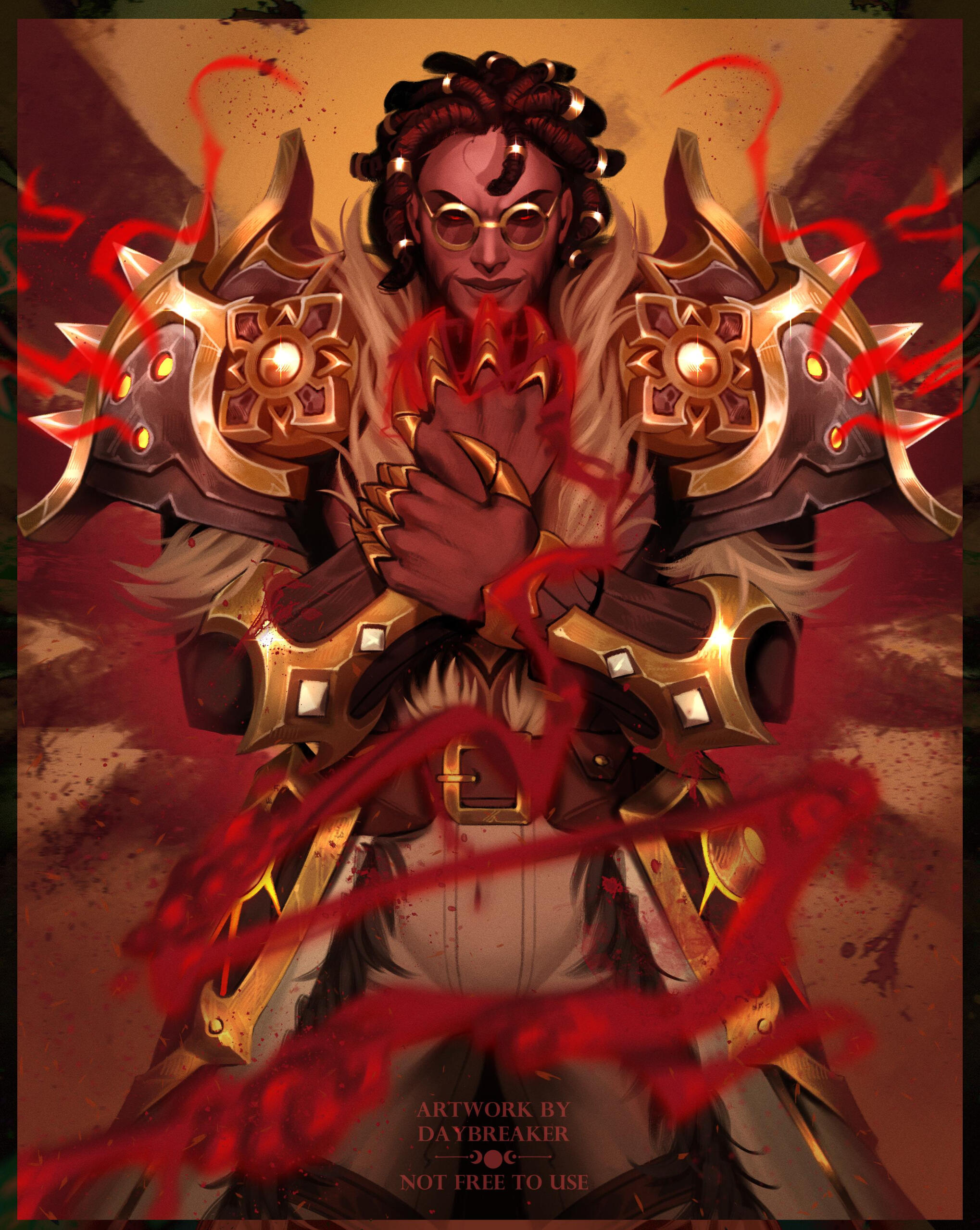 After his defeat by Denathrius, Maurice endured a harrowing ordeal: he was imprisoned and subjected to soul experiments, repurposed as an anima siphon. His liberation came unexpectedly, through the heroes who stormed Castle Nathria. However, in his bewildered and frenzied state, Maurice betrayed his rescuers, fleeing the scene in desperate haste. In the ensuing months, he became a figure of chaos in Revendreth, his unique fusion of hemomancy and the Light making him a formidable and elusive adversary.Eventually, Prince Renethal recognized Maurice's potential as a powerful asset. He was captured and brought in chains, his tumultuous soul pacified and senses restored. The ordeal altered Maurice's abilities: his command of the Light was diminished, while his blood magic skills, albeit still rudimentary, were enhanced. Intrigued by the origins of this newfound power, Maurice decided to return to Azeroth, armed with a Sinstone that hinted at his destined return to Revendreth upon death.However, Maurice's focus remained on unraveling the mysteries of his present life. Determined to understand how he embarked on the path of a Holy Hemomancer, he set out to explore the depths and origins of his unique powers, undeterred by the foreboding prophecy of his afterlife.