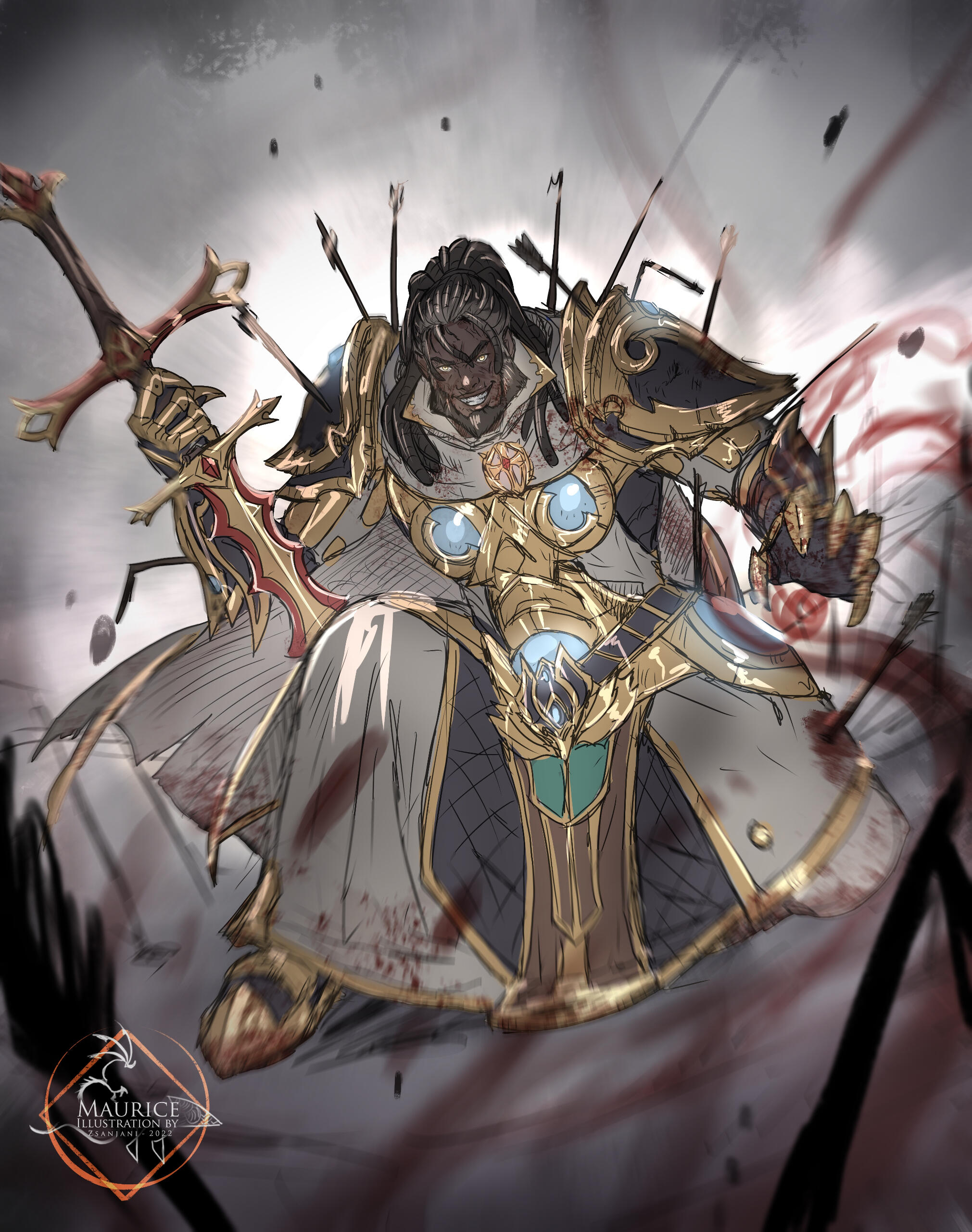 Maurice's innate curiosity and gentle demeanor belie his stature as a formidable fighter and adept warrior, trained in a plethora of weapons. Rather than relying on brute force, he is an optimistic realist who favors intellect and ingenuity to navigate through seemingly insurmountable challenges.In social circles, Maurice thrives in the company of a select few, cherishing moments with close friends and family. His reserved nature stems from his noble upbringing in Dalaran, coupled with a sense of inadequacy from not possessing the Arcane prowess of his celebrated mother. Although Lady Cain endeavored to cultivate sociability in her son by exposing him to numerous balls and banquets, Maurice found contentment in being the unassuming presence in the room, quietly relishing the adoration of ladies who delighted in his charm.